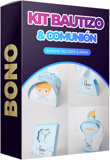 Diseños delicados y religiosos para bautizos y primeras comuniones. Incluye cajas y moldes fáciles de armar.