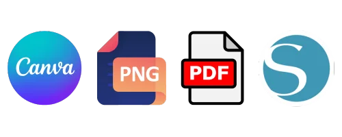 Todo editable en Canva, PowerPoint o Silhouette Studio, en formato PDF y PNG.